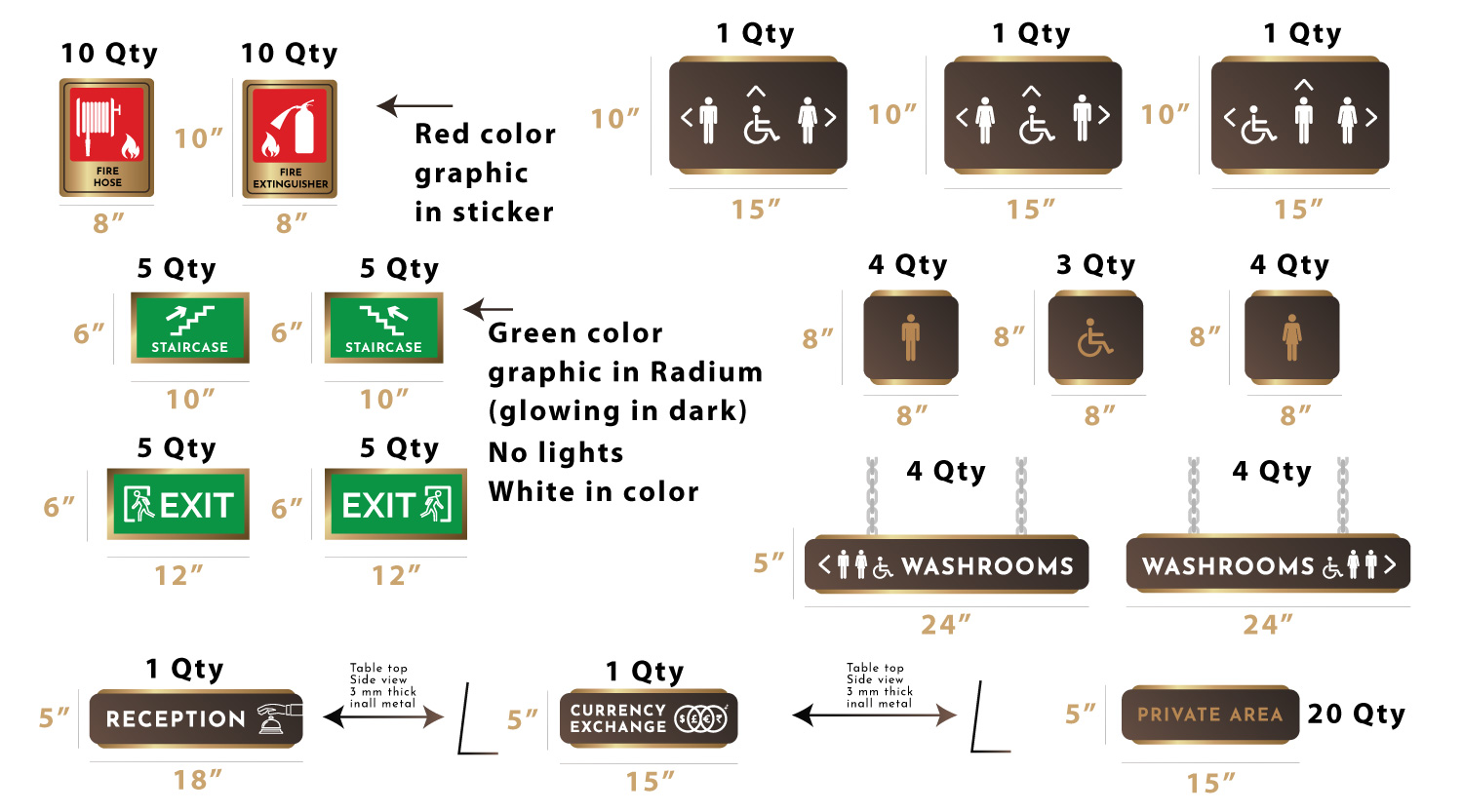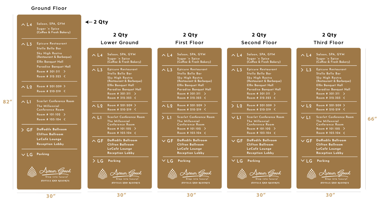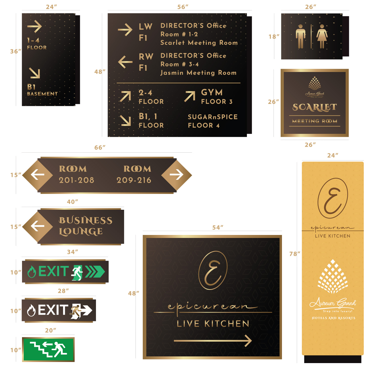 Signage Design: Crafted both indoor and outdoor signage including directional, in-room, restaurant, and banquet signs.